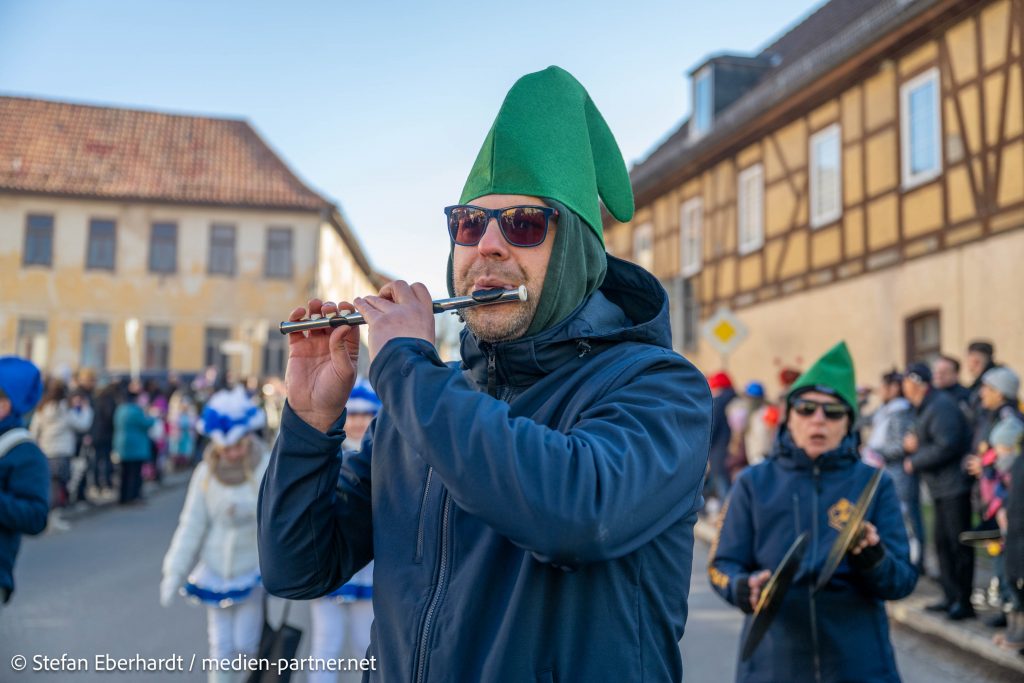 Am darauffolgenden Tag ging es für die Spielleute nach Magdala zum Magdalaer Carneval-Club. Dieser beendete seine 69. Saison mit dem traditionellen Faschingsumzug durch das Stadtgebiet. Auch hier sorgten die Musikerinnen und Musiker mit schwungvollen Märschen und guter Laune für beste Stimmung entlang der Umzugsstrecke. Zahlreiche Zuschauer säumten die Straßen und spendeten reichlich Applaus. Der Spielmannszug bedankt sich auch beim Magdalaer Carneval-Club für die Einladung und gratuliert zu einer gelungenen 69. Saison.